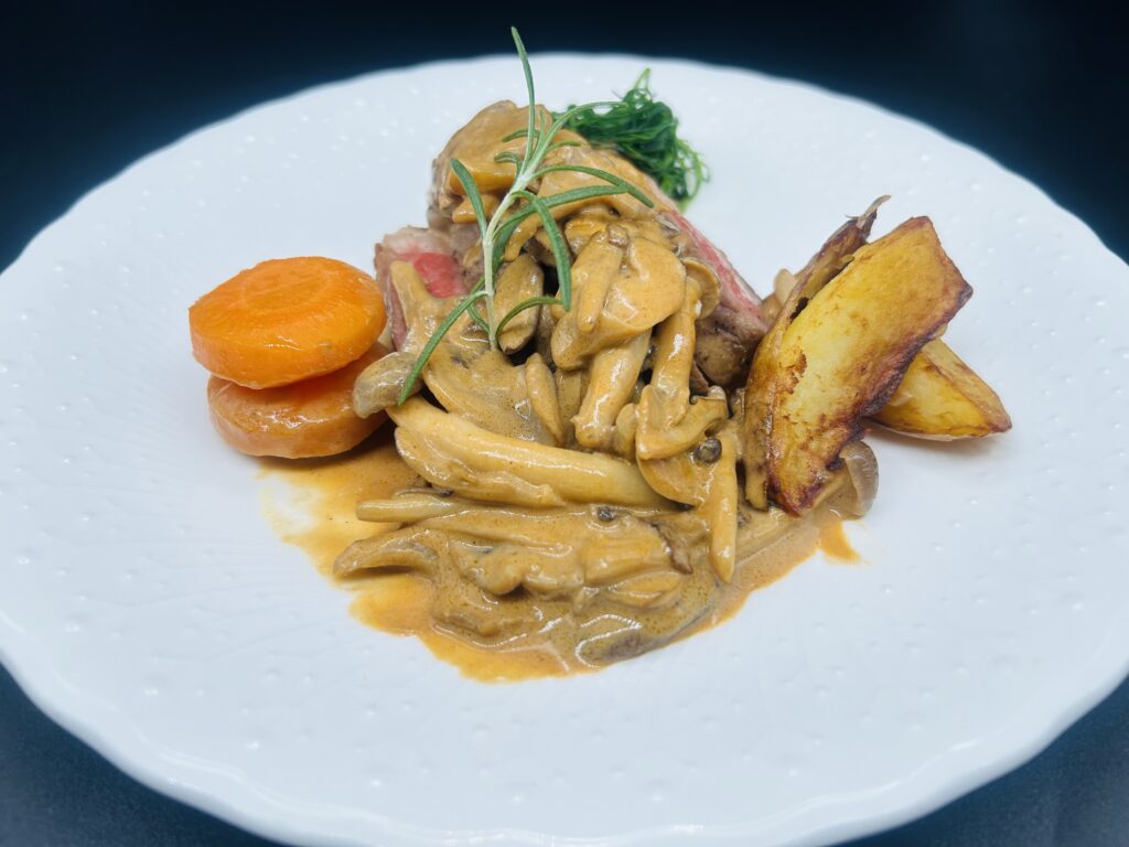 牛ロースステーキ きのこソース
