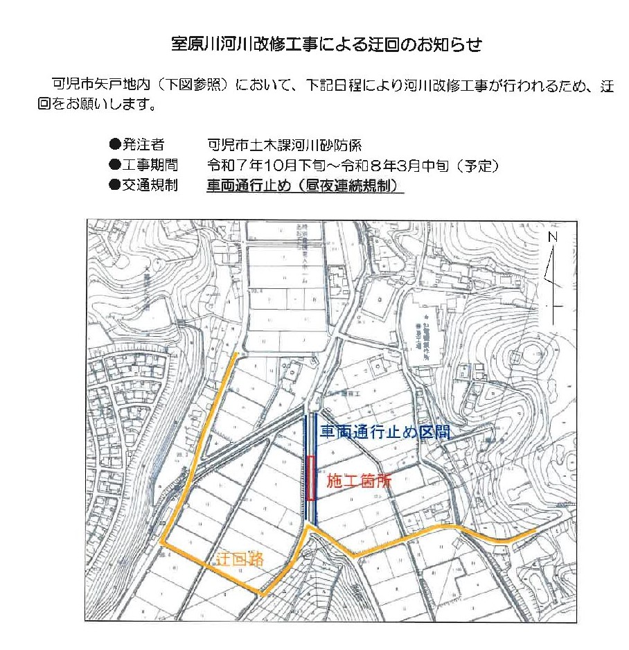 室原川河川敷改修工事による交通規制のお知らせ